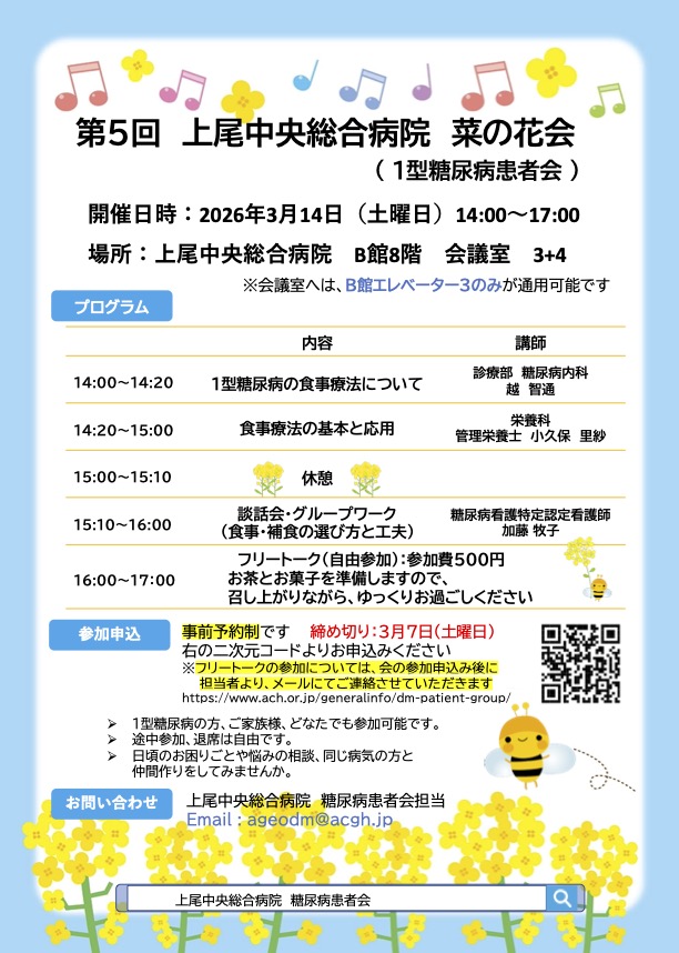 | 担当窓口 | 上尾中央総合病院 糖尿病患者会担当 |